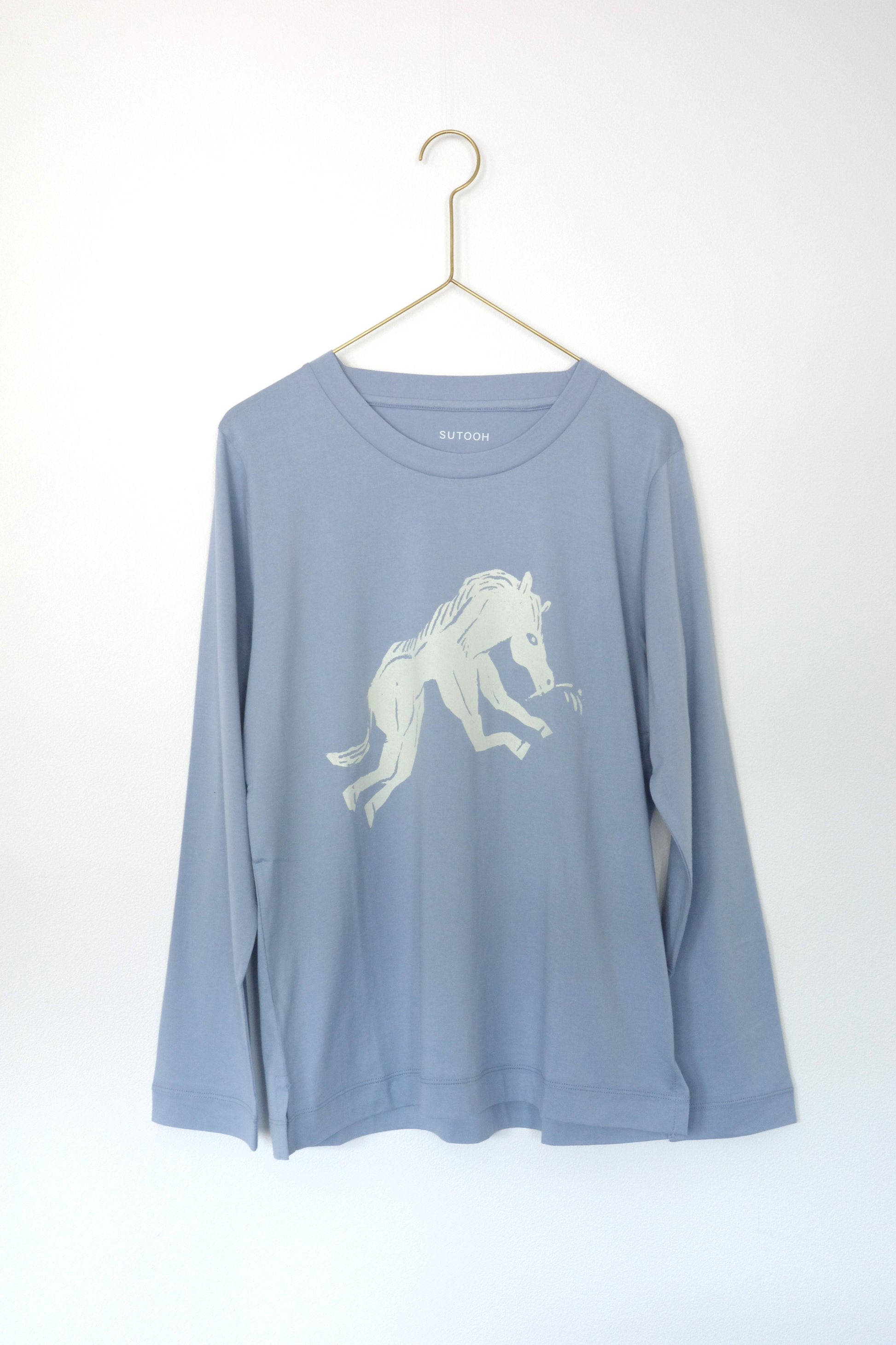 福島県の古道具や衣類をセレクトしているお店 “ gatehorse ” のシンボルである馬の絵をSUTOOHの Suvin Cotton Jersey にプリントしたコラボレートシリーズです。