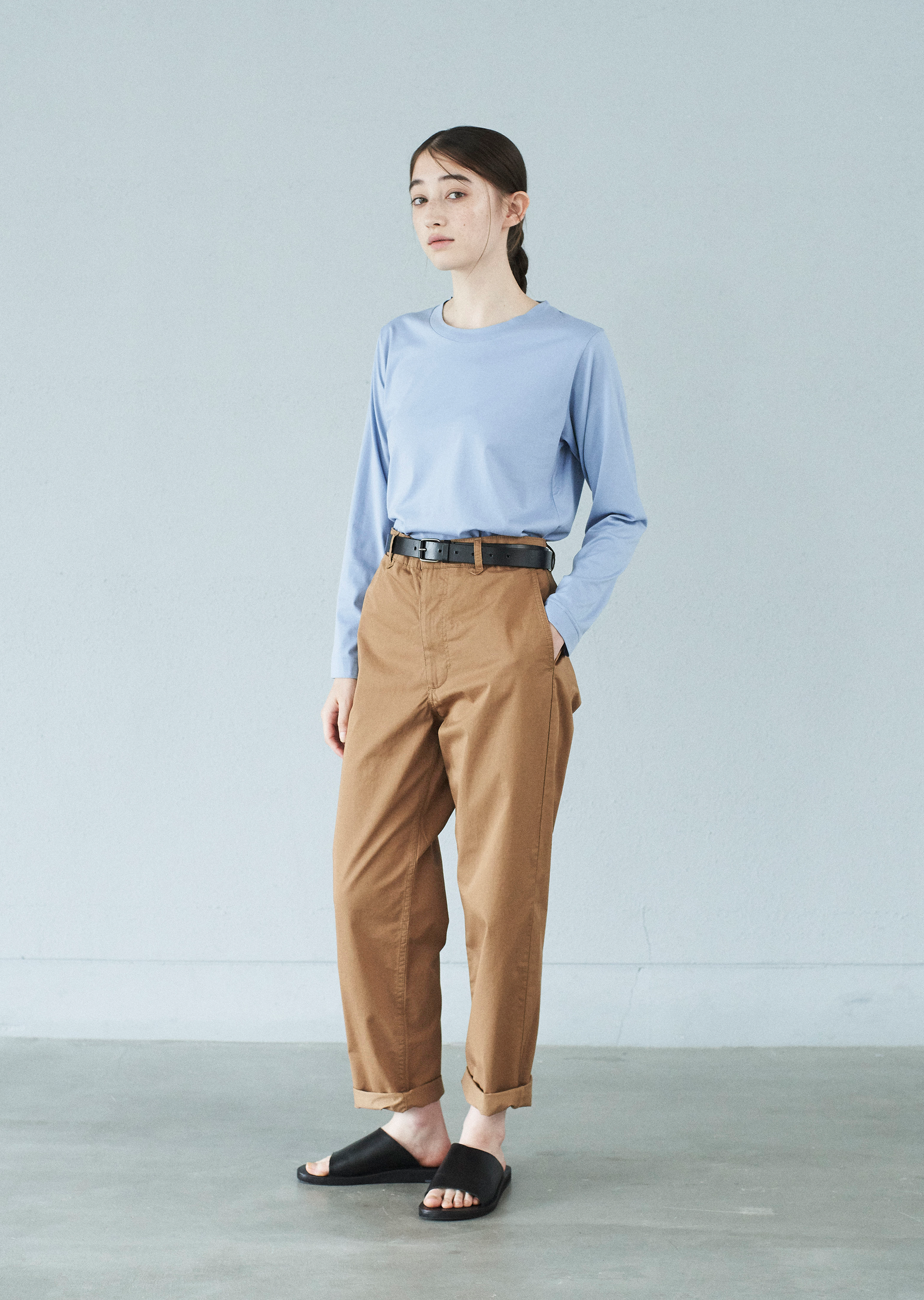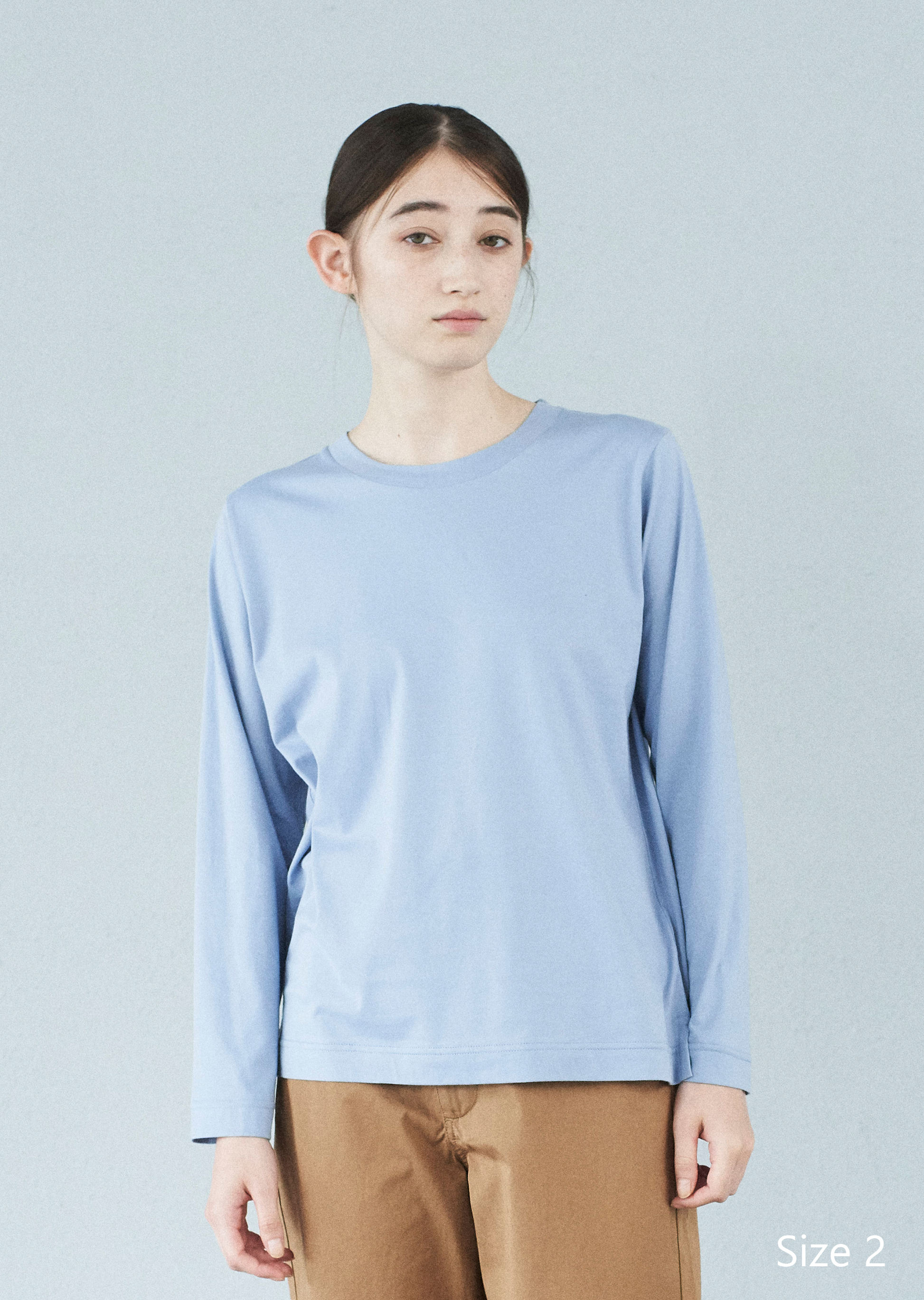スッキリとしたシルエットの、汎用性の高い長袖のクルーネックの長袖。