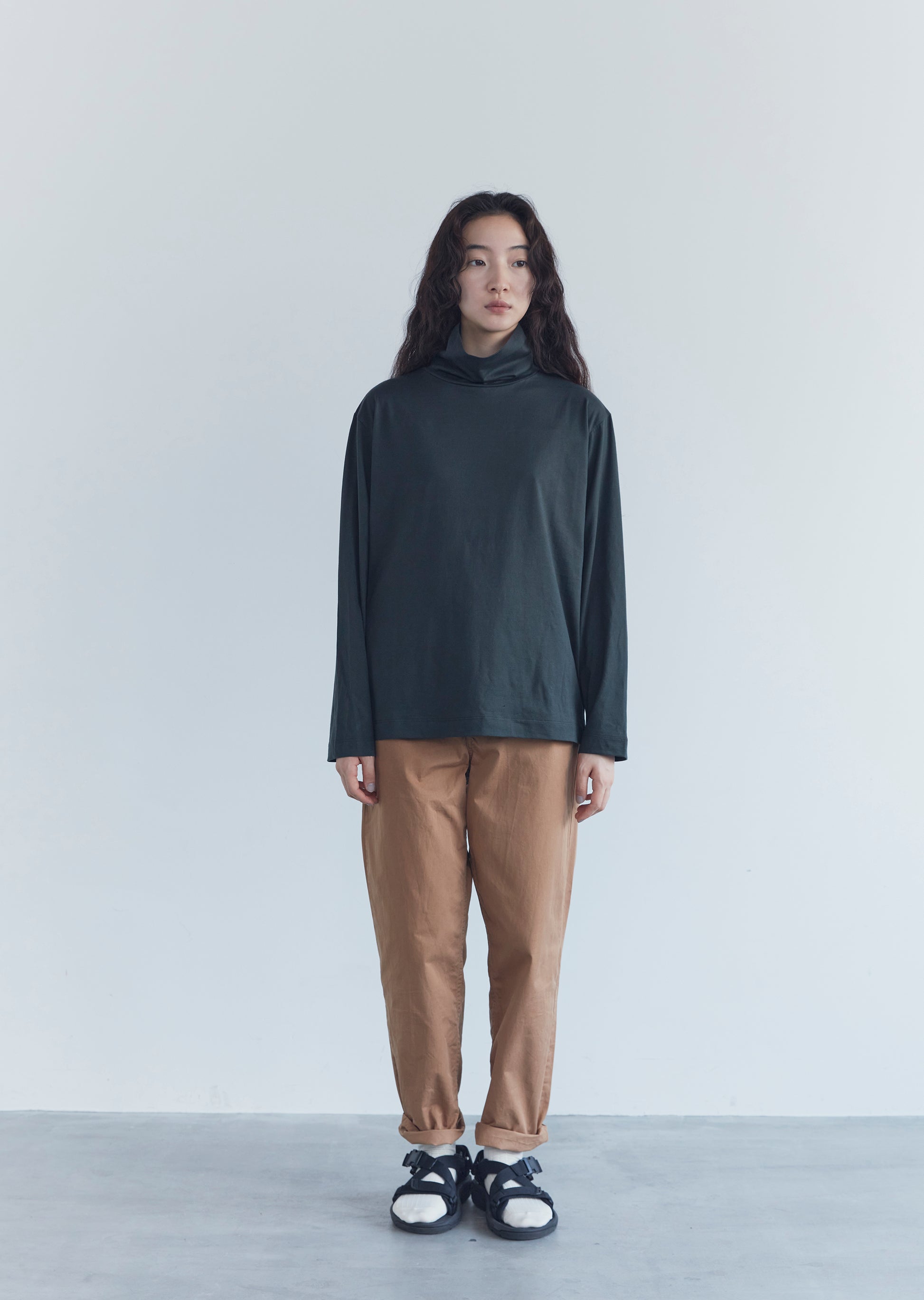 ゆったりとしたシルエットのタートルネックです。首回りはゆったりとしたサイズ感で、ストレスなく着られます。Size 2の1サイズ展開。